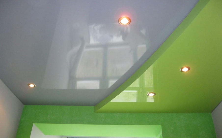 Крепят диагонально, окна и двери закрывают и включают тепловую пушку. Разогревают на расстоянии метра от изделия, температура должна быть сорок-пятьдесят градусов, когда оно начнет вытягиваться закрепляют в багетах полотно; - Подключение света